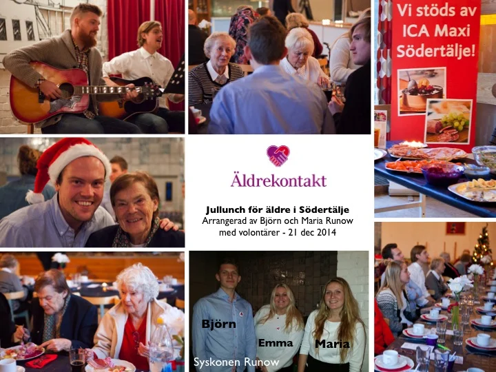 Den 21 december arrangerade volontärerna, och syskonen, Björn och Maria Runow en fantastisk jullunch för ensamma äldre i Södertälje.